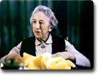 Another bit role for Maggie, this time playing a sympathetic grieving mother and also a friend of Aunt Polly. Not nearly as convincing as her WWW role, her acting in this film is on the hammy side. That starched table cloth...gown...she's wearing in this clip begs to be the scene stealer (I'm ready for my close-up, Mr. DeMille...).