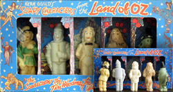 A super-rare collectible—rarely for sale anywhere—is the "Kerk Guild's Soapy Characters from the Land of Oz" figures, released in 1939. With this set, seen at the right, as long as you have the original box, you have a desireable collectible. No box, less interest...although still highly sought after. There are very few of these complete sets available; they show up for online sale only once every few years. Unlike the Funko Pop! figures, this soap set can sometimes be purchased for much less money, perhaps because it rarely shows up anywhere and people don't know about it. The figures were hand-painted.