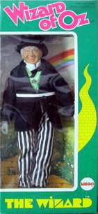 Mego produced a series of ultra-flimsy/cheap Oz characters in the early 1970s, along with a separately purchased playkit. The boxed Wizard figure you see at the left was produced for a very brief time; this boxed version was then discontinued and the Wizard figure was the only figure included in the playset...one had to buy the other six figures separately.