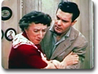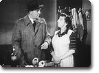 This scene is near the end of a rather horrible early-1950s black-and-white television series, The Trouble with Father. Margaret is caught snooping through the window of an acquaintance, where fishy-seeming things have been taking place. She gets caught by a local cop, is almost charged as a peeping tom, but is bailed out of trouble by series "father", Stuart Erwin, who teaches his snoopy friend a lesson, a common theme of shows in those days.
